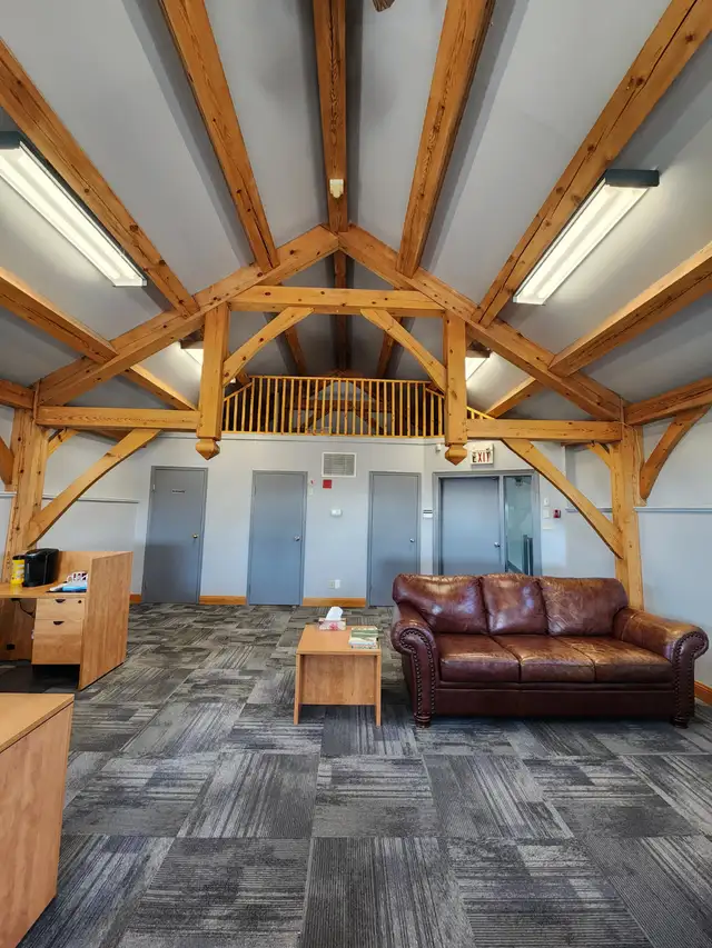 - Work in a beautiful timber frame building that is spacious and well-equipped