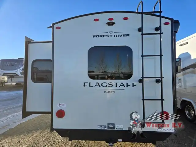 With any Flagstaff E-Pro travel trailer by Forest River, you will experience lightweight towing, style and features that will meet your needs, plus amenities that give you more than you expected! Built with interior and exterior composite sidewall construction for added strength and durability, a fully laminated roof for weather-tight protection, and aluminum truss roof bracing for enhanced stability. These trailers are equipped with Dexter leaf-spring axles for smooth towing and durable performance. The interior features an aluminum dinette, bed, and bunk, providing a strong and lightweight framework for comfortable living. Additionally, the backup camera prep ensures a safe and stress-free reversing experience. Make your selection today!