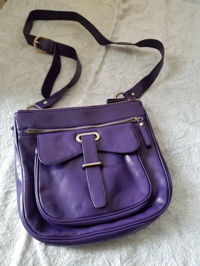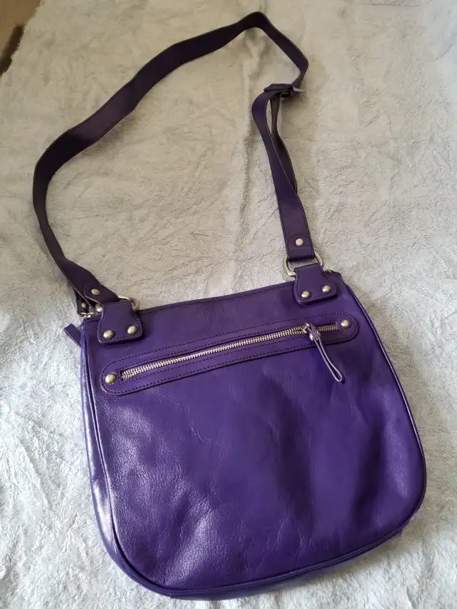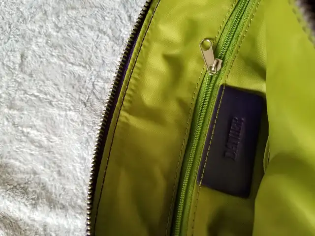 Passionate Purple Danier leather bag with lime green lining....like new condition
