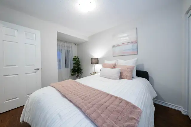 Carpet-free freehold townhome on a quiet, family-friendly cul-de-sac with no sidewalk and no rear neighbours. Bright open-concept main floor with large windows, electric fireplace, and walkout to a private backyard with a large deck—ideal for entertaining. Eat-in kitchen with stainless steel appliances and ample cabinetry. Spacious primary bedroom with walk-in closet and private ensuite. Numerous upgrades including fresh paint (2025), refreshed deck (2025), powder room (2024), laminate flooring (2021), pot lights (2021), newer fridge, stove & dishwasher (2024), and zebra blinds (2025). Unfinished basement with bathroom rough-in offers great future potential. Minutes to GO Station, parks, schools, and shopping in Milton's desirable Willmott neighbourhood.