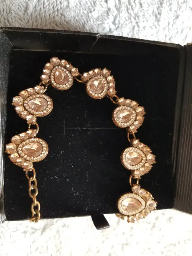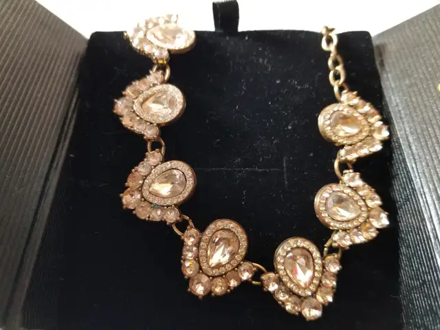 Gold and Copper tones with Sparkle Glass Stones 22" long on copper tone chain