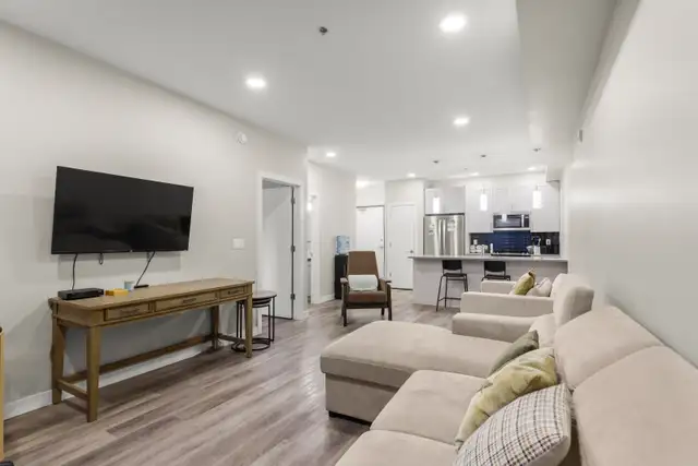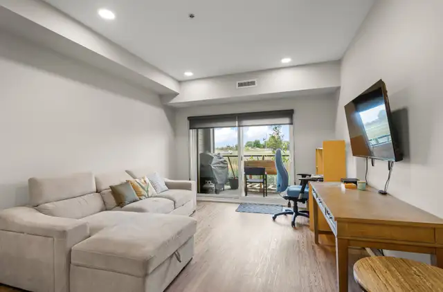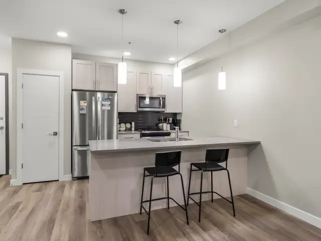 Discover modern condo living at 1505 Molson St, Unit 137! This bright 1-bedroom, 1 bath home spans 767 sqft with a thoughtful layout designed for comfort and convenience. Enjoy a main floor location with an east facing balcony that fills the space with natural light. The kitchen shines with quartz counters, tiled backsplash, peninsula seating, and stainless steel appliances, while durable vinyl plank flooring flows throughout. In-suite laundry makes daily living easy, and low condo fees include 1 outdoor parking stall and a storage locker. Residents have access to a fitness centre, owner's lounge, guest suites, and flexible common spaces. Ideally situated near shopping and healthcare, this unit offers a low-maintenance, low-cost lifestyle without compromise. Perfect for first time buyers or anyone seeking modern, effortless living.