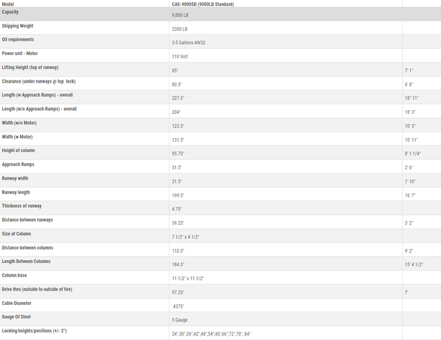 This CAE-9000SD 4 post lift also includes 4pcs. drip trays and approach ramps. Please ask about other optional accessories that are available for this lift.