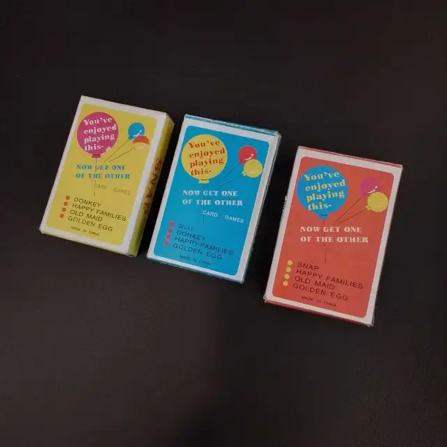 (3) vintage 1960's collectible children's card games. Boxes and cards in excellent pre-owned condition. Size.. 2 x 2.75 inches. FOR the COLLECTOR