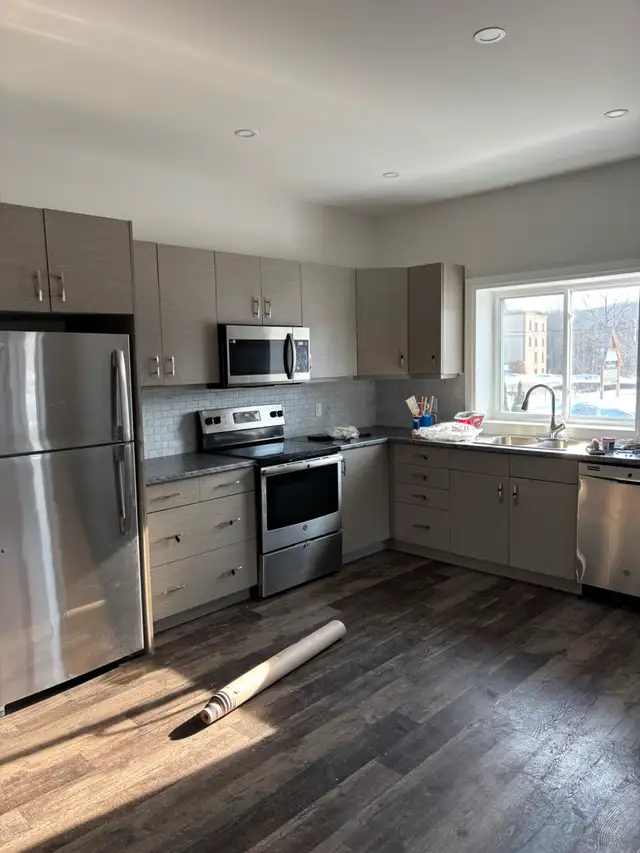 Bright, sunny upper-unit apartment (over 1,000 sq ft) in a two-storey building above medical offices. Accessible via outside stairs, this open-concept home features a large kitchen with an adjacent dedicated dining area and a living room space — perfect for comfortable everyday living and entertaining.