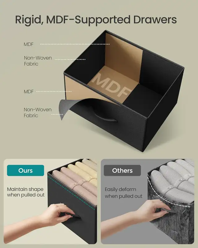 ️ 6-Drawer Fabric Dresser Storage Organizer – Ink Black / Ebony Black