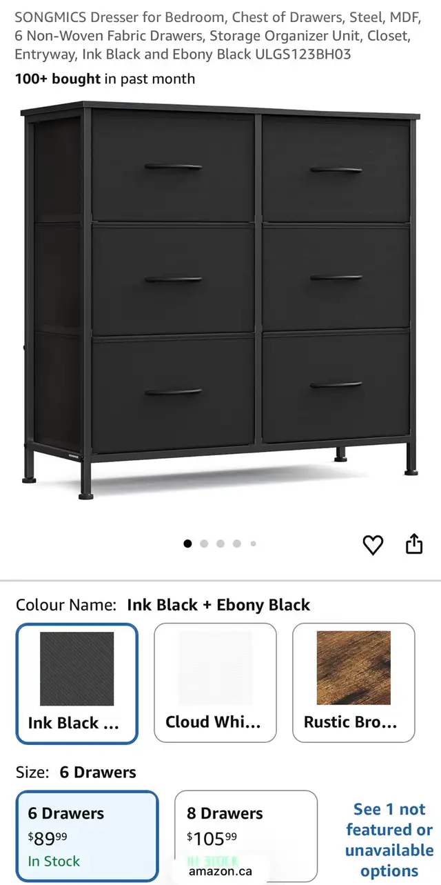 This sleek 6-drawer dresser offers practical storage with a modern design that works in almost any room. Built with a sturdy steel frame, a durable wood-look top, and lightweight fabric drawers, it provides plenty of space to organize clothing, accessories, and everyday essentials while maintaining a compact footprint.