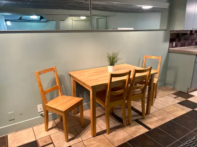 Welcome to this cozy furnished one-bedroom apartment, featuring a functional layout perfect for one person.