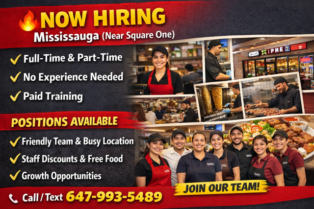 NOW HIRING — Mississauga (Near Square One)