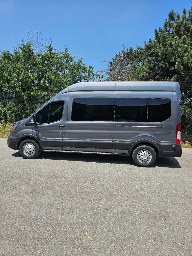Travel comfortably in our 2024 Ford Transit 15-passenger van, available for rent with a professional driver for any occasion.