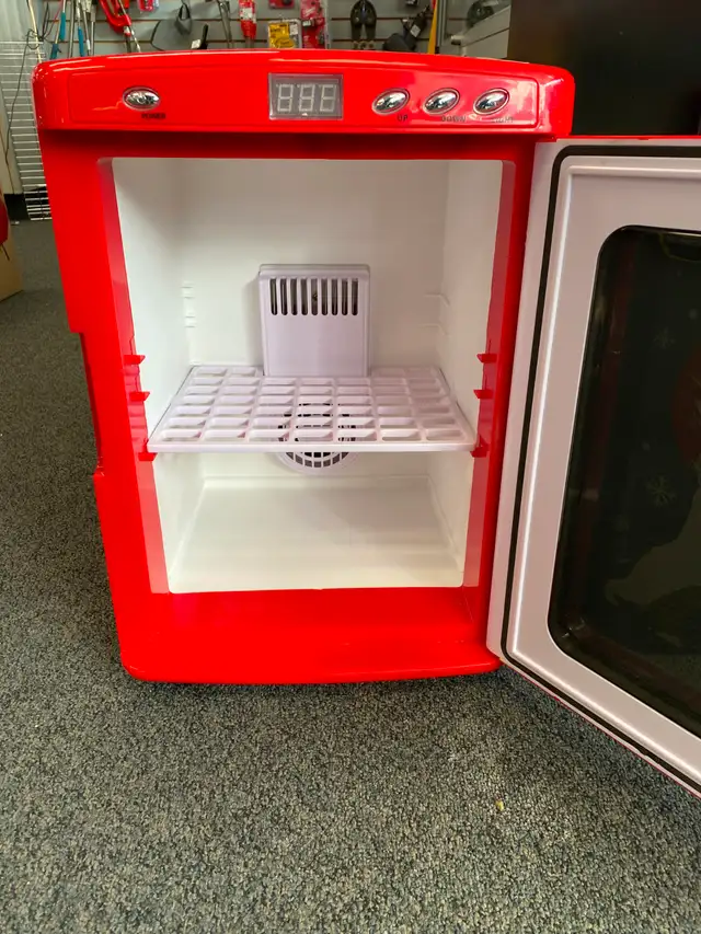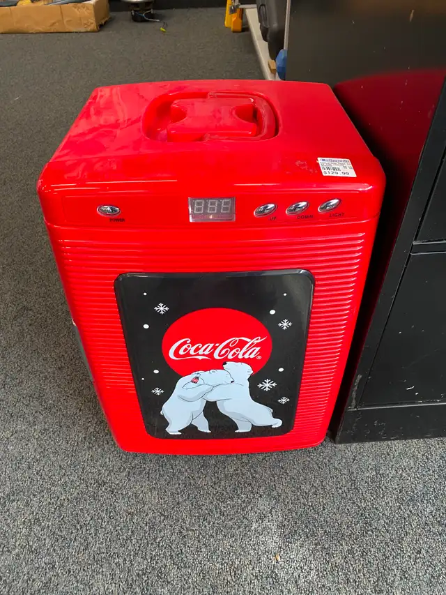 If you want a mini fridge that's as cool to look at as the drinks inside, the Koolatron Coca‑Cola 28‑Can Portable Fridge is the perfect addition to your home, office, or game room. With its classic red finish and iconic Coca-Cola polar bear design, this stylish compact fridge holds up to 28 cans (25-litre capacity) while a glass display door and LED interior light show off your drinks like a mini store cooler. It uses quiet thermoelectric technology to cool beverages up to about 19°C below room temperature, and it can even switch to warming mode for food or snacks. Lightweight and portable with both 110V AC and 12V DC power options, it's perfect for countertops, dorms, road trips, or your man cave—giving you ice-cold drinks and vintage Coke style wherever you plug it in. ❄️