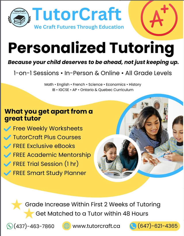 WhatsApp: (437)-463-7860 | Call/Text: (647)-621-4365 | www.tutorcraft.ca | tutorcraft.online