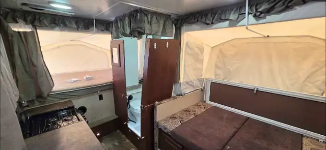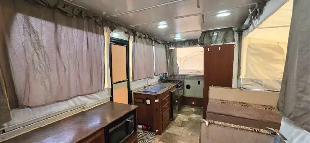 EVERYTHING IS WORKING-ROCK HARD FLOOR! NO WATER DAMAGE. -NICE WARM FURNACE-NEWER BATTERY AND PROPANE TANKS. POWER POP UP- POWER JACK. 3 WAY FRIDGE/FREEZER. LARGE WET BAT/TOILET. LARGE AWNING!