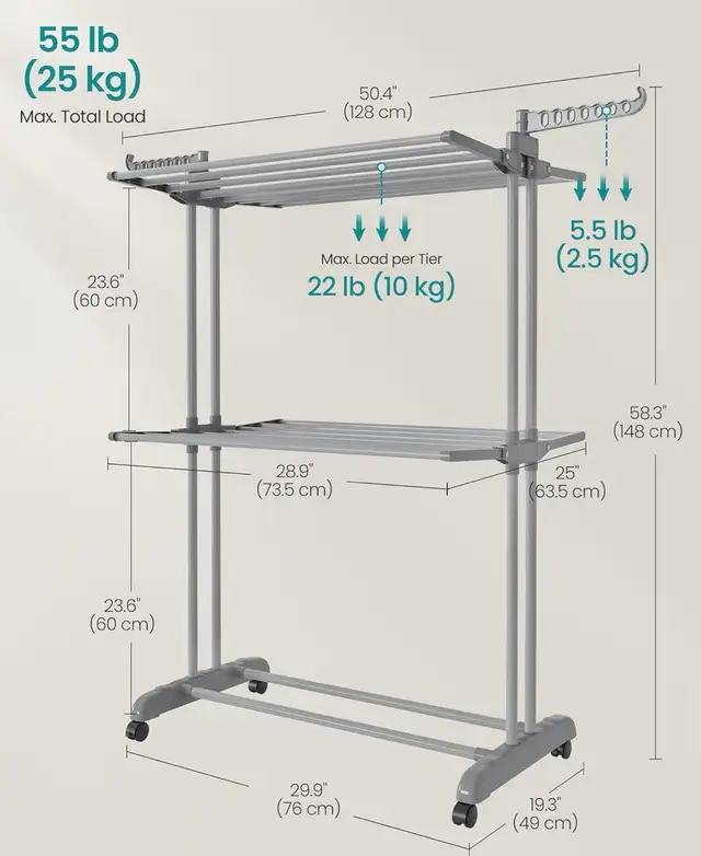 Supports up to 25 kg of laundry