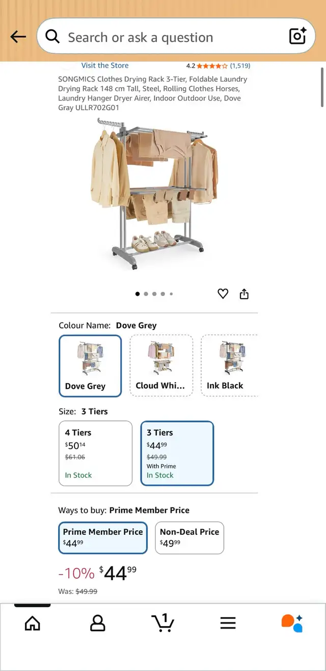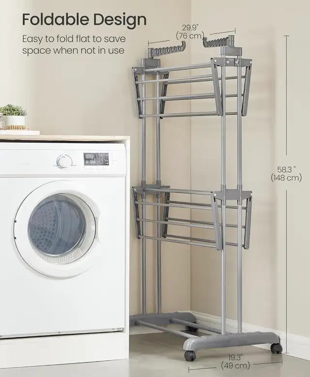 SONGMICS 3-Tier Clothes Drying Rack with Wheels – Dove Grey