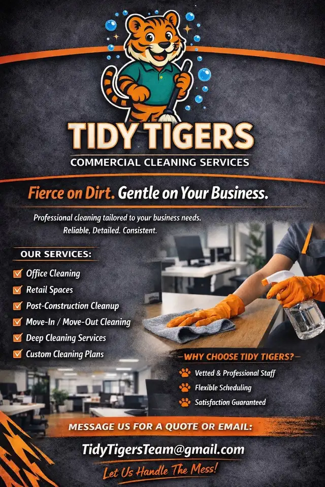 Tidy Tigers Cleaning is a locally operated cleaning service based in Brantford, specializing primarily in commercial cleaning for offices and professional spaces.