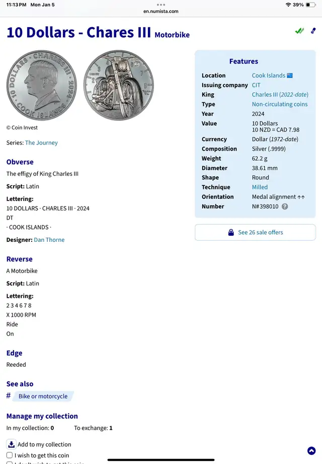 2024 COOK ISLANDS $10 2oz .999 'black' silver MOTORBIKE