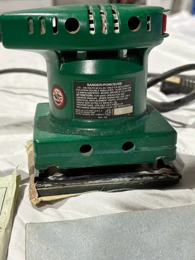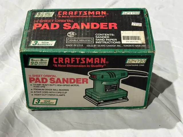 Reliable Craftsman 1/4 sheet orbital pad sander in good working condition.