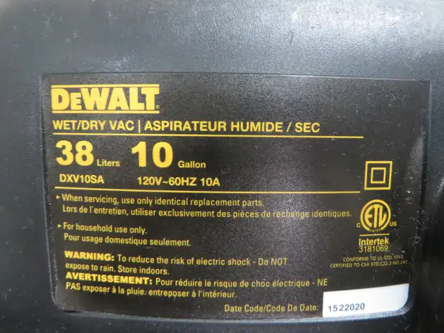 DE WALT WET/DRY VACUUM