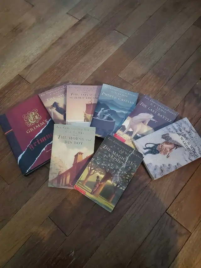 * Titles include The Lion, the Witch, and the Wardrobe, Prince Caspian, The Voyage of the Dawn Treader, The Horse and His Boy, The Magician's Nephew, The Last Battle, and Grimm's Fairy Tales.