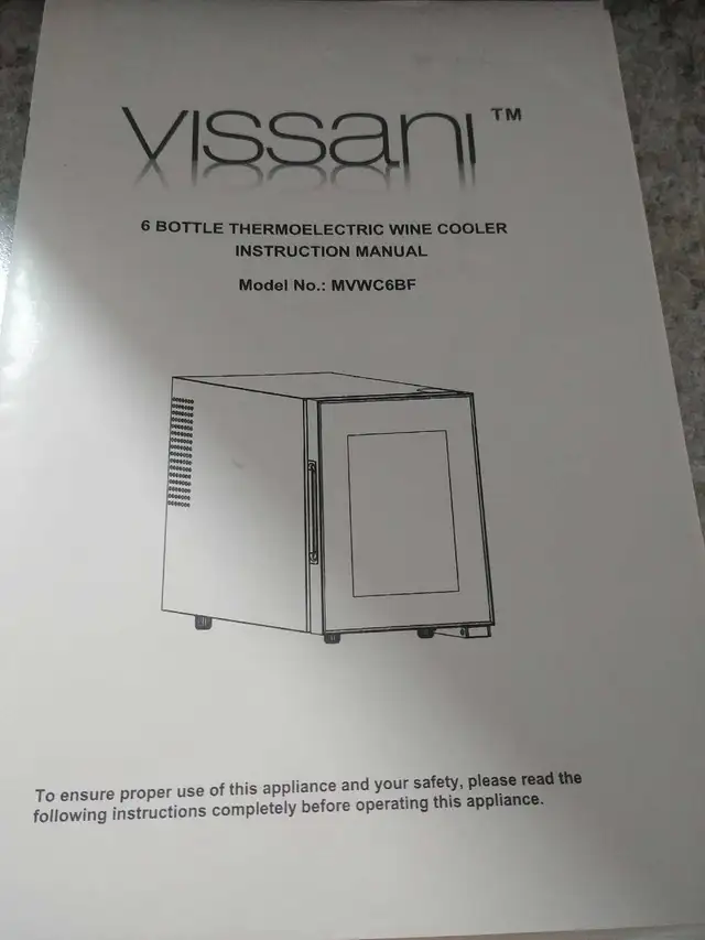 Brand new Vissani 6 bottle wine cooler or any beverage cooler. Holds approx. 24 cans.