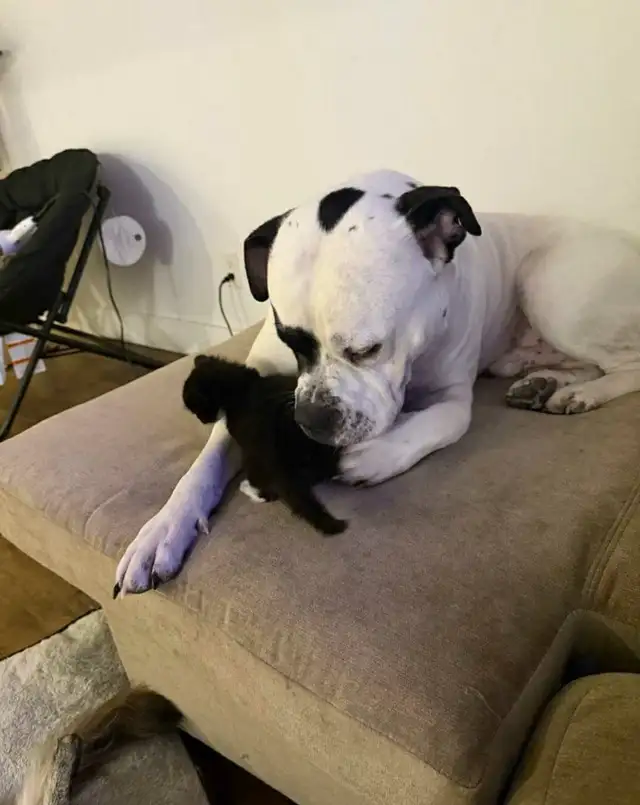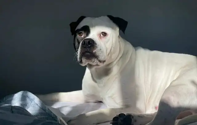 This is a sweet boy he loves hugs, kisses and snuggles and thinks he is Boston Terrier sized, he's a big sucky baby who wants to lay on top of you and give you kisses.