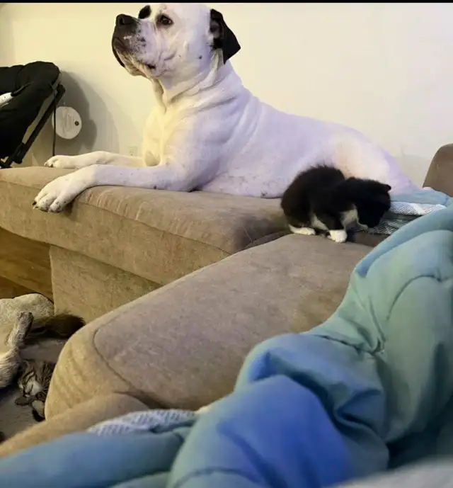 This is a very sweet very well-behaved boy, however with a Boston Terrier already in the house and his overwhelming power the situation has not been good, I also took a job finally after over a month of searching and due to the situation have been putting him in the crate, he DOES not like the crate and will whine like crazy.
