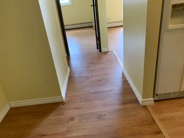 Reduced deposit $ 1100.00 No dog allowed ! Beautiful renovated ,very spacious 2 bedroom of 870 sqft, Newer kitchen counter top and newer windows ,laminate flooring throughout , fresh paint, onsite coinamatic laundry, available immediately. on third level with fireplace. available immediately Cat is ok with non refundable deposit , BUT NO DOG PLEASE ! Unit comes with fridge and stove. Walk to junior high school and bus and Co-op grocery store.