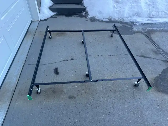 Metal queen size bed frame with casters, like new