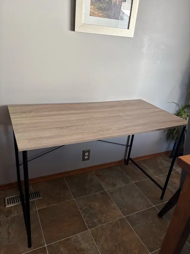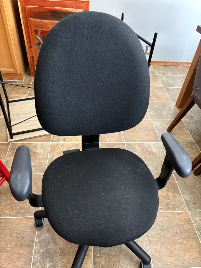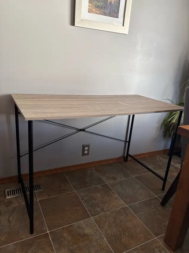 Table and office chair used for home office. The chair could use vacuuming. Text 403-464-4932 if interested. No delivery.