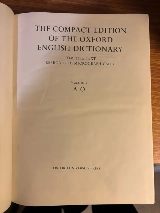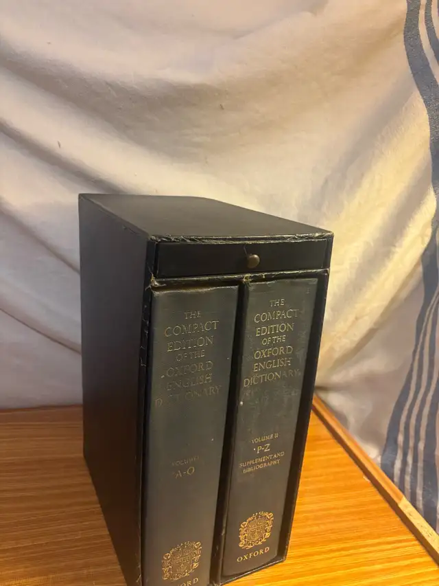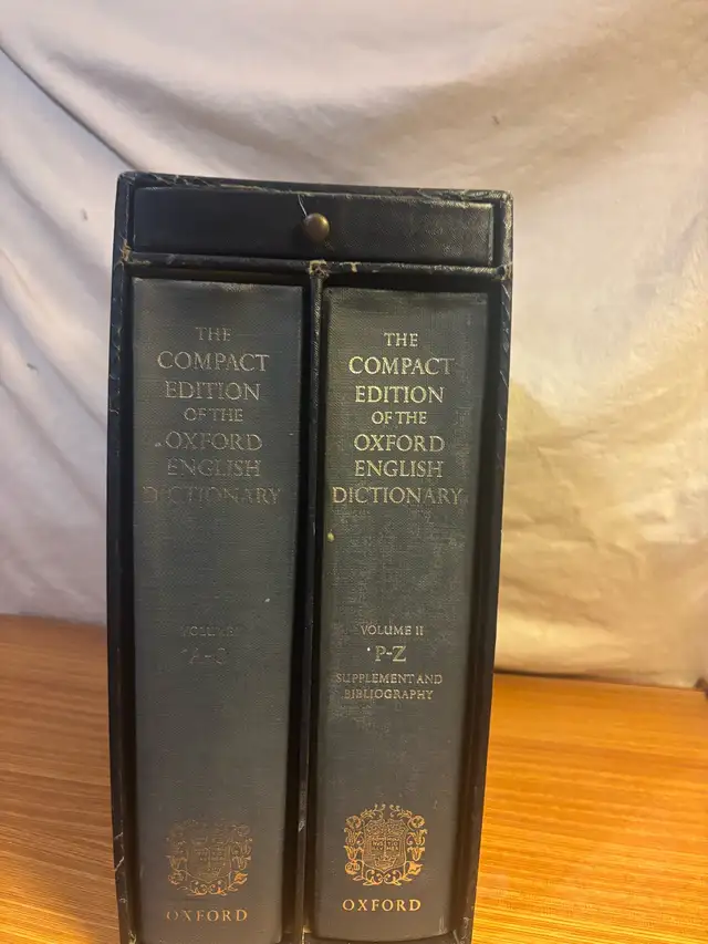 The Compact Edition of the Oxford English Dictionary 2 volume set. The books are in good condition and ready to use. Call 647-745-1005 for more details.