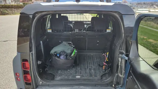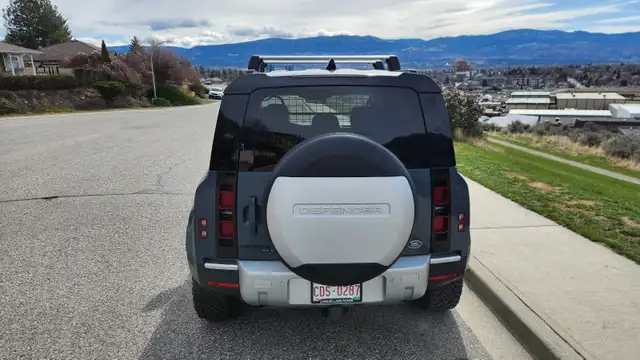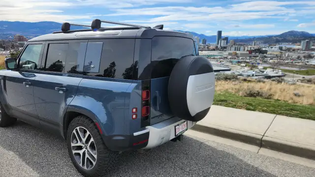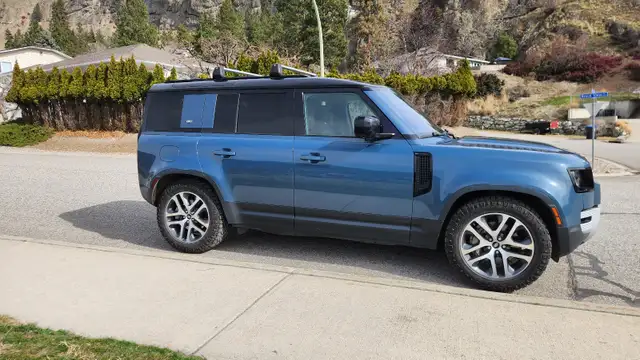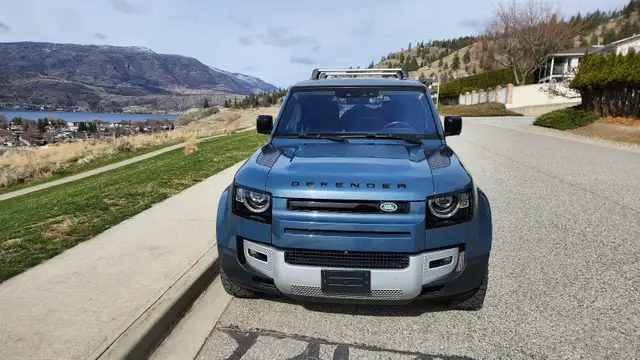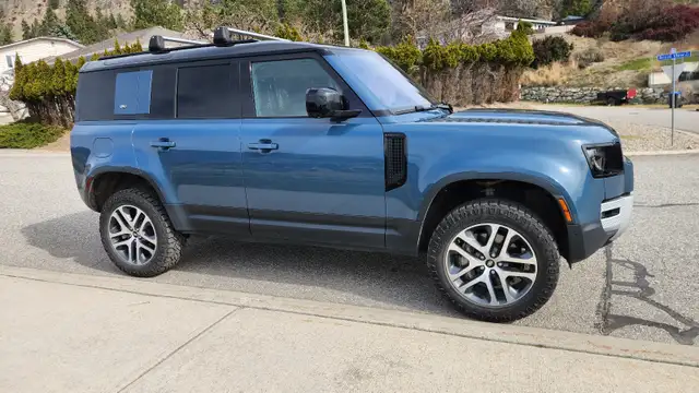 This awesome Land Rover Defender has both a turbocharger and a supercharger for about 400 horsepower and 400 pounds of torque. It has a tasman blue exterior with black leather interior and push button air lift system (see passenger side pics for ride heights). All power options are included and vehicle can be controlled with an app (annual subscription required). Included are a cargo wall inside and cargo racks on top. This vehicle is in excellent condition, has been in no accidents and has been well maintained. I am selling because we are moving to a condo with limited parking. This is a private sale so there is no GST. For more info, contact Dana at 403-680-7839. No dealers please.