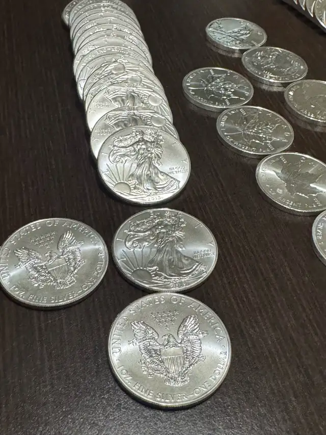 Inventory regularly includes investment-grade products such as Canadian Maple Leafs, American Eagles, and other recognized bullion coins and rounds. Pricing follows the live precious metals market with a small premium depending on the product and quantity.