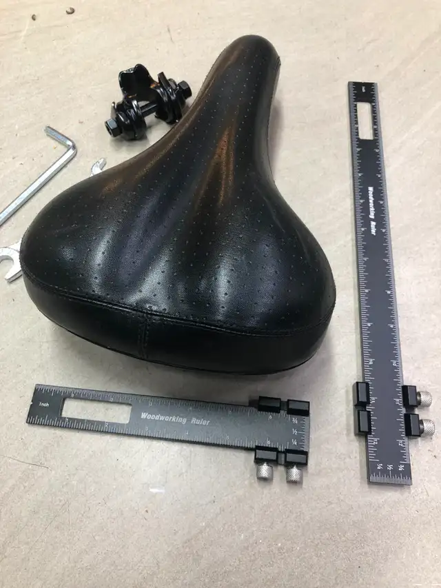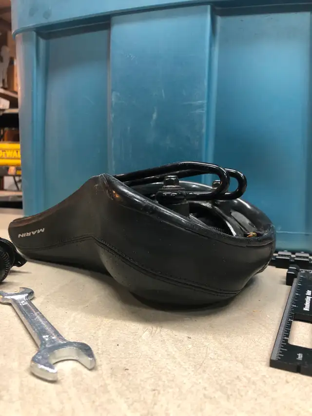 Standard bicycle seat. This one, from a lady's bike is a wider saddle than many. My wife transitioned to a different kind of seat so this one is up for grabs. Pretty standard black vinyl. Standard post mounting hardware is included – there are two different kinds of “mounts” so you'll want to make sure that this one works for you (most ordinary bikes have the same standard diameter mounting post that this seat is designed to fit). If you already have seat mounting hardware then this is a quick upgrade for your butt. Priced at $5. Coming from a clean well-kept home as you'll see when you come to look over the item. Riverview area near Osborne and Jubilee. Text or call “G” at 204-960-2636.