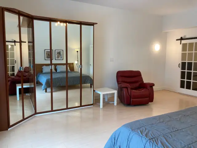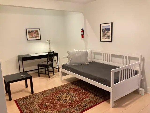 Spacious short- or long-term accommodation with private king bedroom, bathroom and den/office plus shared kitchen and laundry. Central location between Tunney's & Bayview O-Train stations. Smoke- and pet-free.