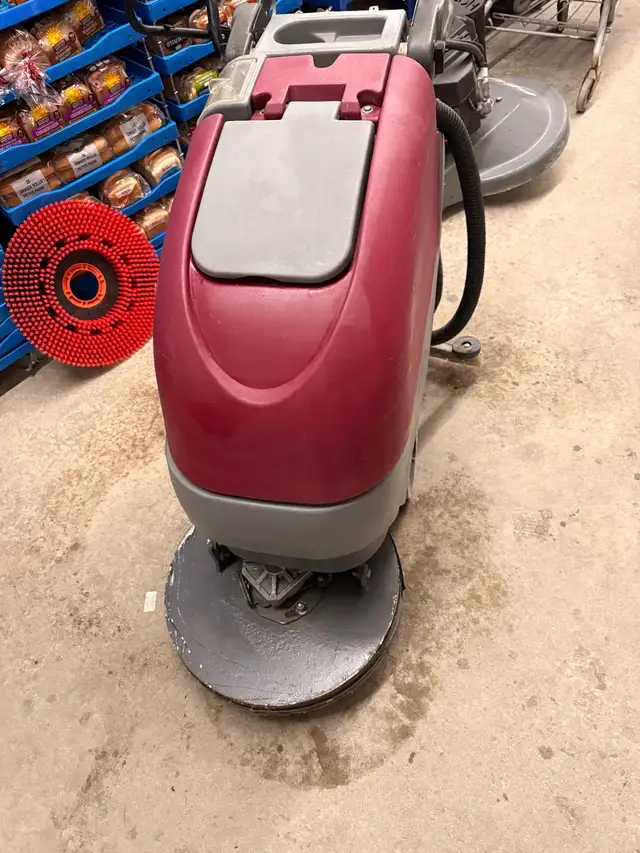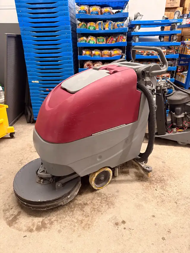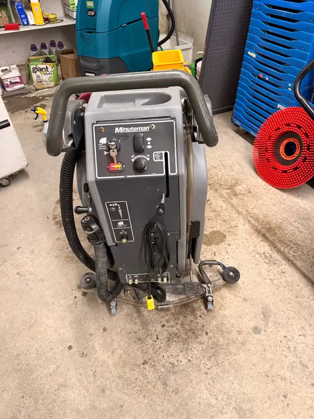 Professional Minuteman E20 walk-behind auto floor scrubber in good working condition. Perfect for restaurants, gyms, banks, warehouses, retail stores, and cleaning companies.