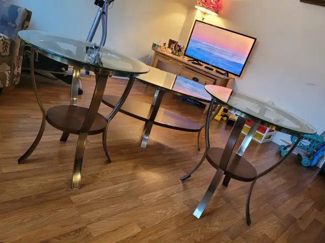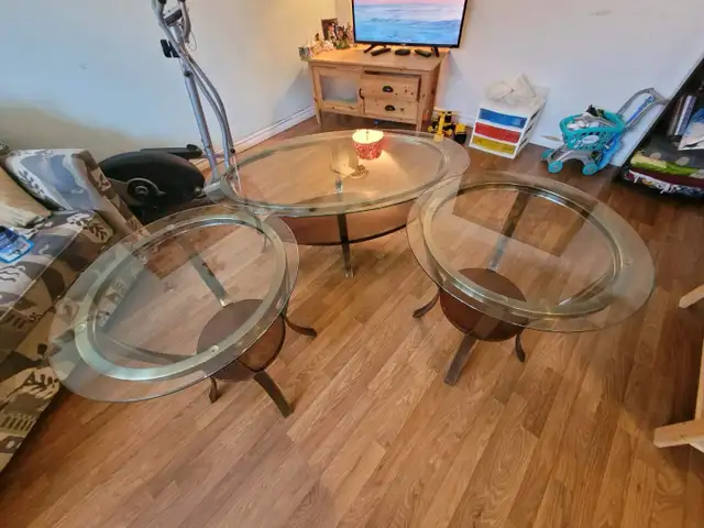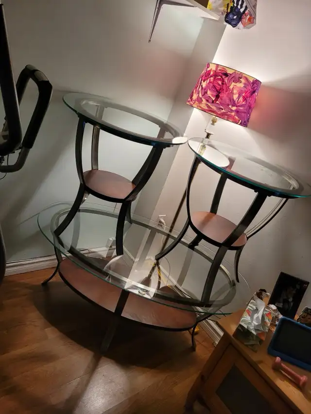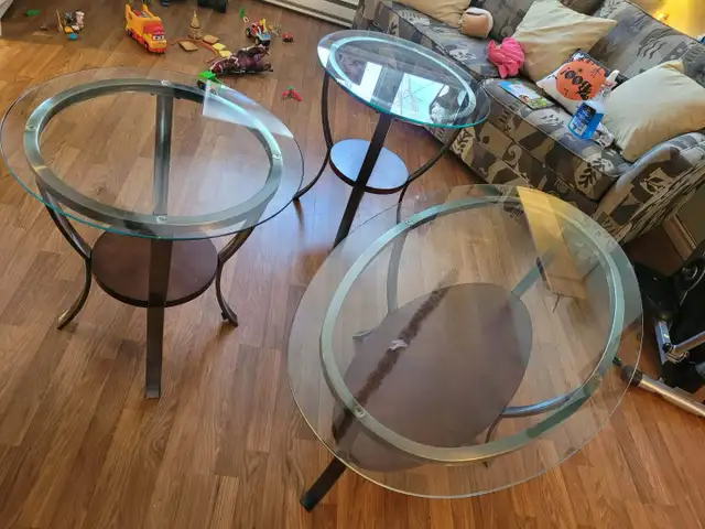 Glass coffee table and 2 matching end tables