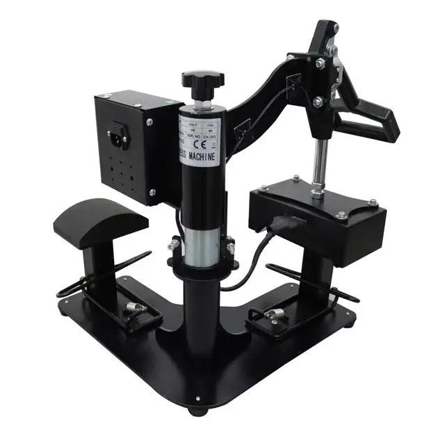 This double station heat press machine is widely used for transfer image on caps, hats.