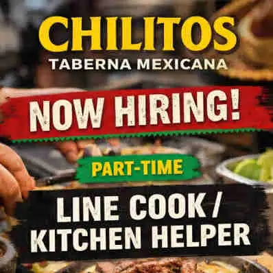 Chilitos Taberna is hiring a Part-Time Line Cook / Kitchen Helper to join our fast-paced kitchen team.