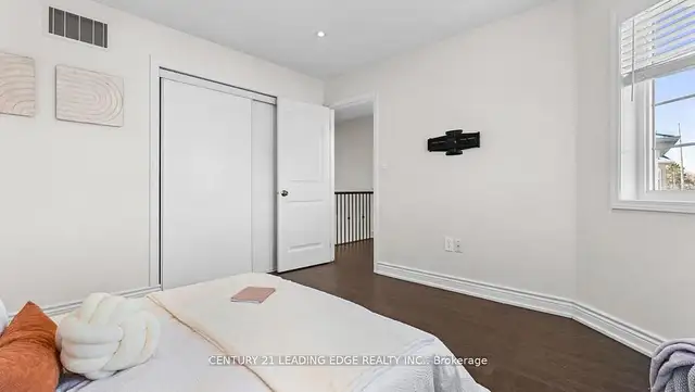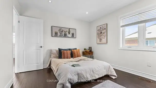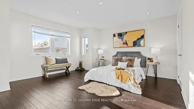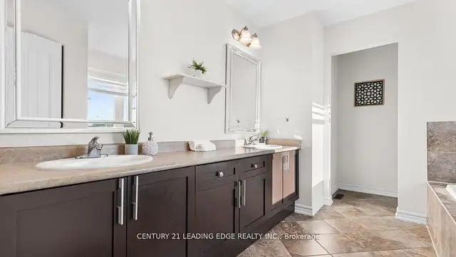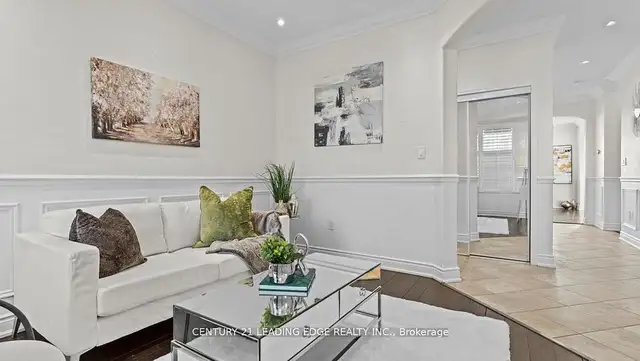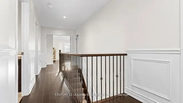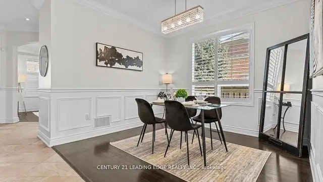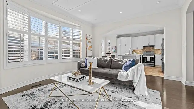 Welcome to this stunning detached two-storey home by Mattamy Homes, a highly respected builder known for quality craftsmanship. This elegant residence offers 9 ft ceilings, over 3,200 sq. ft. of finished living space and is thoughtfully designed for modern family living. The main level impresses with rich hardwood flooring, neutral paint palette, pot lights, crown moulding, and wainscoting throughout, along with California shutters that add timeless charm. The spacious layout features a large living room plus a separate above-grade family room, highlighted by a stylish feature wall. The chef-inspired kitchen boasts quartz countertops, stainless steel appliances, custom backsplash, ample pantry space, built-in storage, an island and a separate breakfast area. Upstairs you'll find four generously sized bedrooms, upper-level laundry and multiple walk-in closets. The primary retreat offers a luxurious five-piece spa-like ensuite. The finished legal basement includes a legal separate entrance, den, bathroom and excellent in-law or income potential. Additional highlights include a fully fenced yard, extended driveway for extra parking and a beautiful oversized front porch; perfect for enjoying warm spring evenings and summer nights. Over 300k of upgrades! Nest thermostat, smart door lock & central vacuum. The basement is furnished! The perks are never ending. Situated as an end home on the street (feels like a corner), this property offers added privacy and curb appeal. Ideally located close to schools, parks, wooded trails, and all essential amenities. Newer A/C, furnace, and roof add peace of mind. A rare opportunity in today's market! Come see it for yourself and fall in love!
