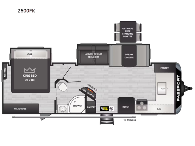 Keystone Passport GT travel trailer 2600FK highlights: