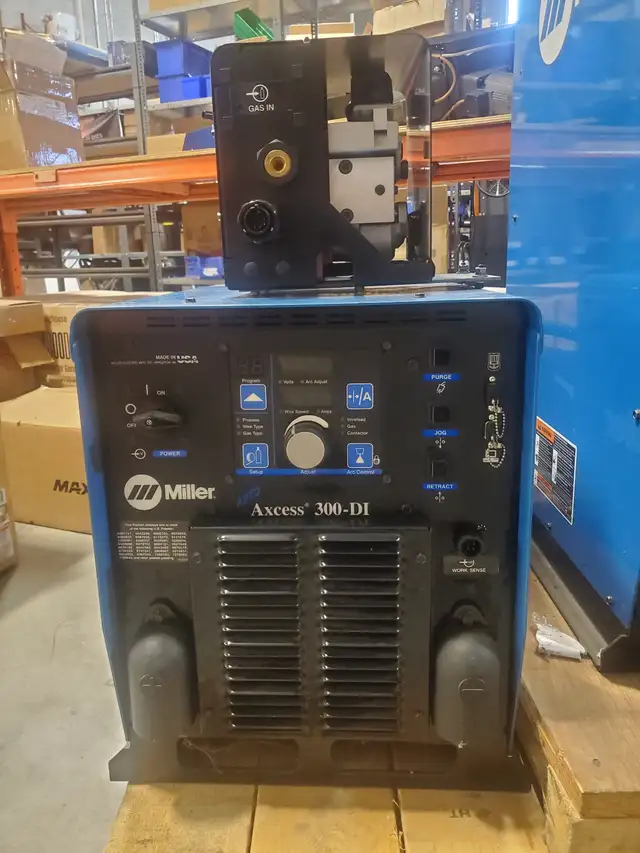 Miller Axcess 300-DI industrial MIG welding system with wire feeder.