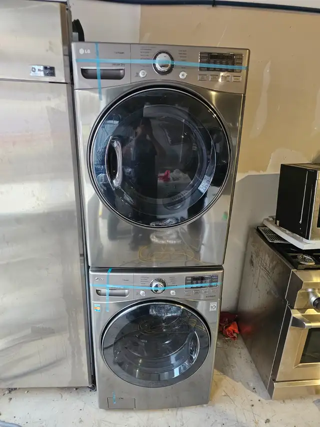 STEAM! LG 27' Stainless Steel Front-Load Stackable Washer Dryer