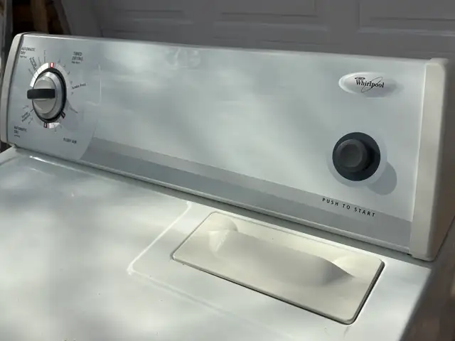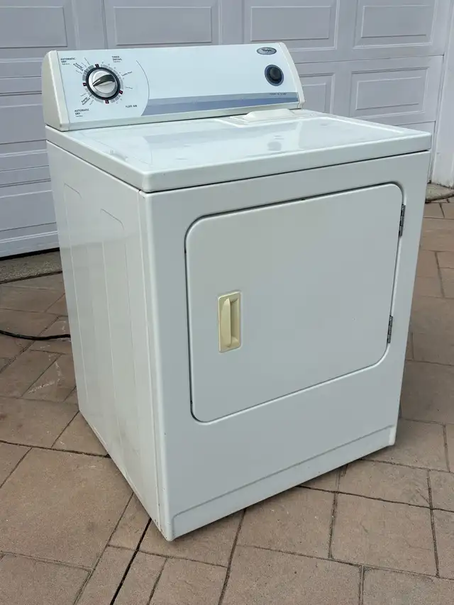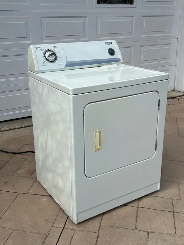 Whirlpool dryers are known for their durability and simple mechanical controls, making them dependable and easy to use.