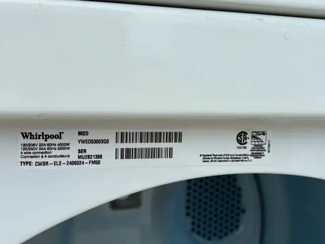 Reliable Whirlpool electric dryer in excellent working condition. This unit has been cleaned and tested and runs smoothly with strong heat and airflow.