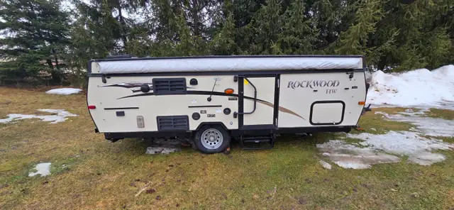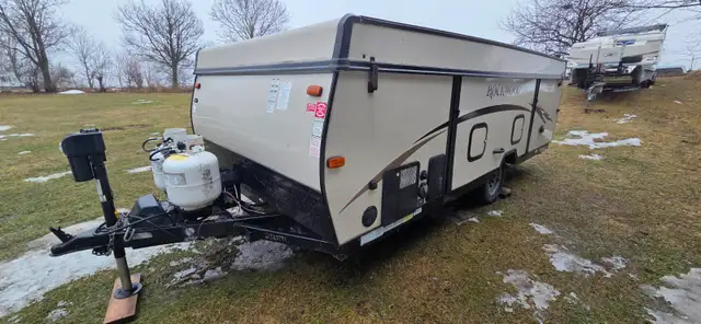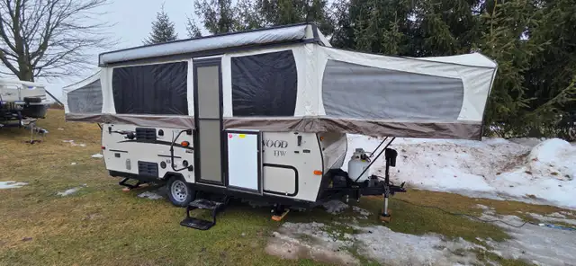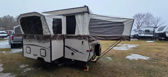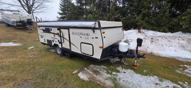 This Forest River Rockwood High Wall HW276 pop-up camper is perfect for your medium sized family or group of friends. This unit features plenty of seating areas between the gaucho sofa with seat and 72"x 50" booth dinette. You can cook the perfect burger on the outdoor gas grill while you jam out to music with the AM/FM media center with Bluetooth. A 13' awning with a LED light strip illuminates the night as you create wonderful memories together.
