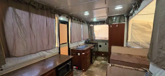 EVERYTHING IS WORKING-ROCK HARD FLOOR! NO WATER DAMAGE. -NICE WARM FURNACE-NEWER BATTERY AND PROPANE TANKS. POWER POP UP- POWER JACK. 3 WAY FRIDGE/FREEZER. LARGE WET BAT/TOILET. LARGE AWNING!