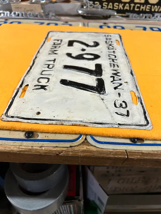 1937 Saskatchewan Farm truck license plate. Was repainted years ago $50 phone or text 306-960-2052