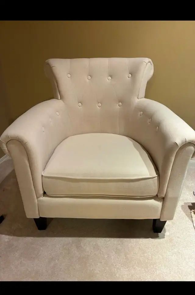 Free chair. Comfortable, but 1 leg needs to be fixed.