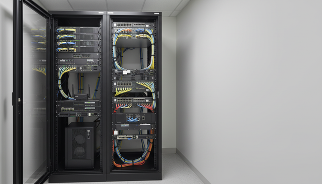 Professional equipment installation including Ubiquiti UniFi and other commercial-grade networking solutions.